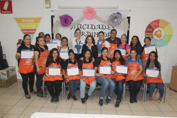 Los encargados de entregar la distinción fueron Silvia Vallejo de Ortega, presidenta de la asociación; Imelda Morales, coordinadora del Programa Mujer, Thania Valdés, coordinadora de la unidad, y Carlos Rodríguez, de recursos humanos de Home Depot.