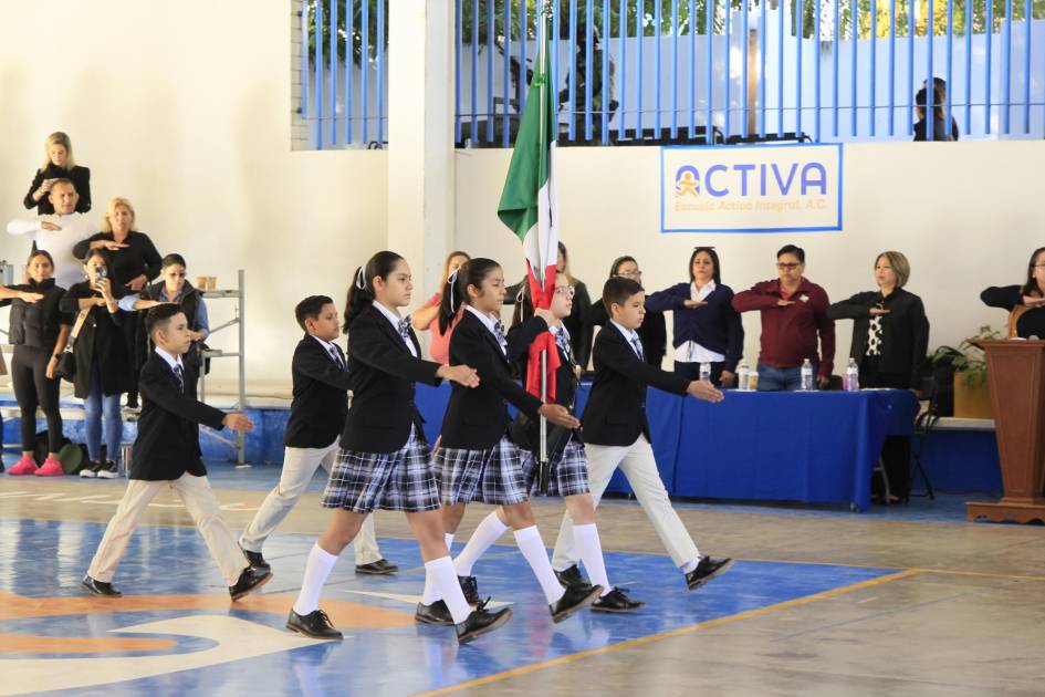 Alumnos que conforman la escolta de la Escuela Activa Integral. -