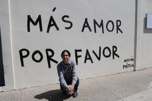 "Más amor por favor", "Sin poesía no hay ciudad", "Bésame mucho" y "A veces te quiero siempre", fueron los versos que plasmó el artista.