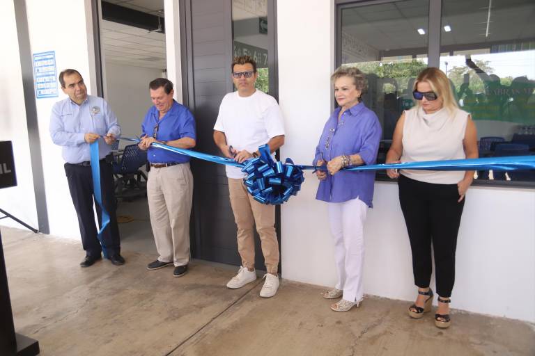 En el corte del listón inaugural el empresario Amado Guzmán Reynaud, quien estuvo acompañado por sus padres, Amado Guzman Wolfskill y Yoya Reynaud de Guzmán, y Emma Guzmán.