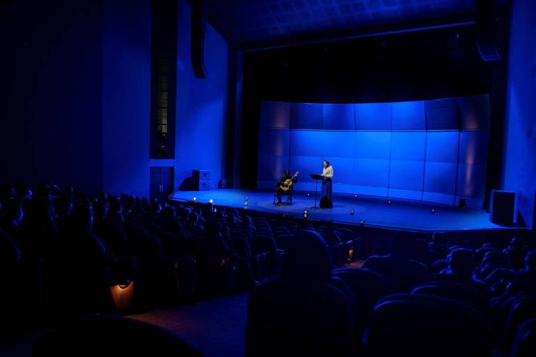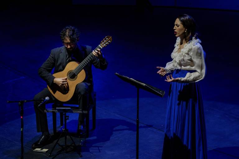 Como dueto, la guitarra y la voz, más que acompañarse, se unieron en una íntima comunión entre ambos instrumentos interpretando piezas de Franz Schubert, Benjamín Britten, Heitor Villalobos y, por último, Joaquín Rodrigo.