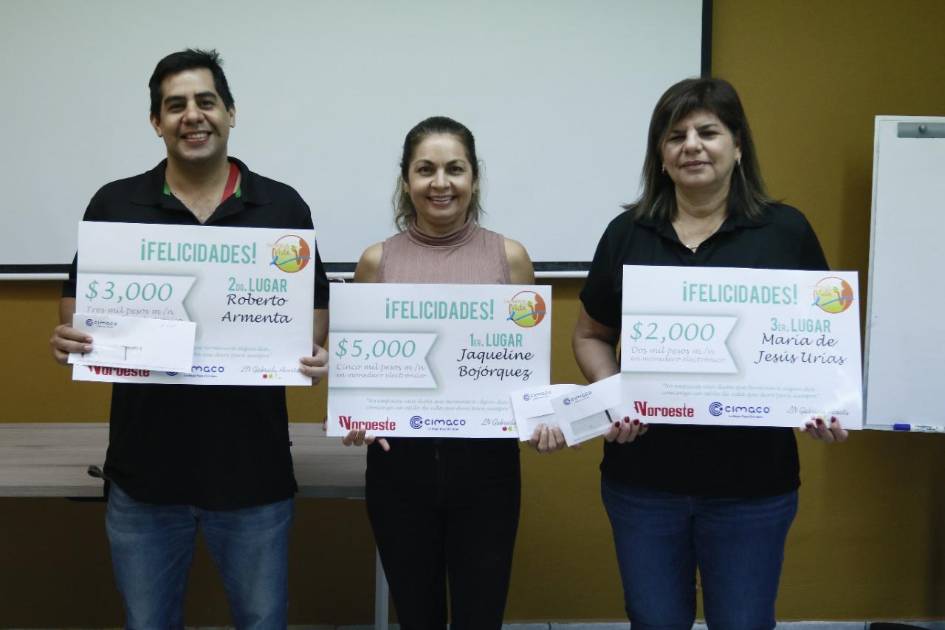 El primero, segundo y tercer lugar lo obtuvieron Jaqueline Bojórquez, Roberto Armenta y María de Jesús Urías, respectivamente, haciéndose acreedores a monederos electrónicos de Cimaco.