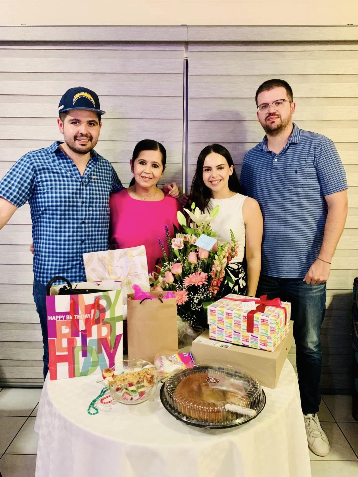 Para festejarla, le organizaron una cena en casa de su mamá, a la que acudieron su sobrina Karla Mariana Castro, su tía Elva Ninfa de Solano, así como su nuera María Sarmiento, esposa de su hijo Miguel, y Anny Coronel, novia de su hijo Jesús Antonio.