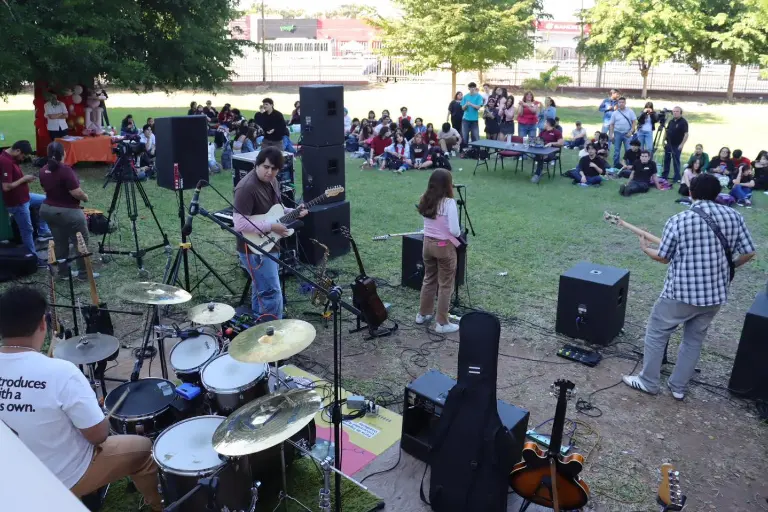 La música fue el lenguaje del amor en una tarde inolvidable con el Concierto “Entre Acordes y Besos”, que contó con la participación de más de 15 bandas del Taller de Música de la Unidad Regional Culiacán, a cargo de Juan Carlos Verdejo Zamora, quienes se reunieron para conmemorar el Día del Amor y la Amistad.