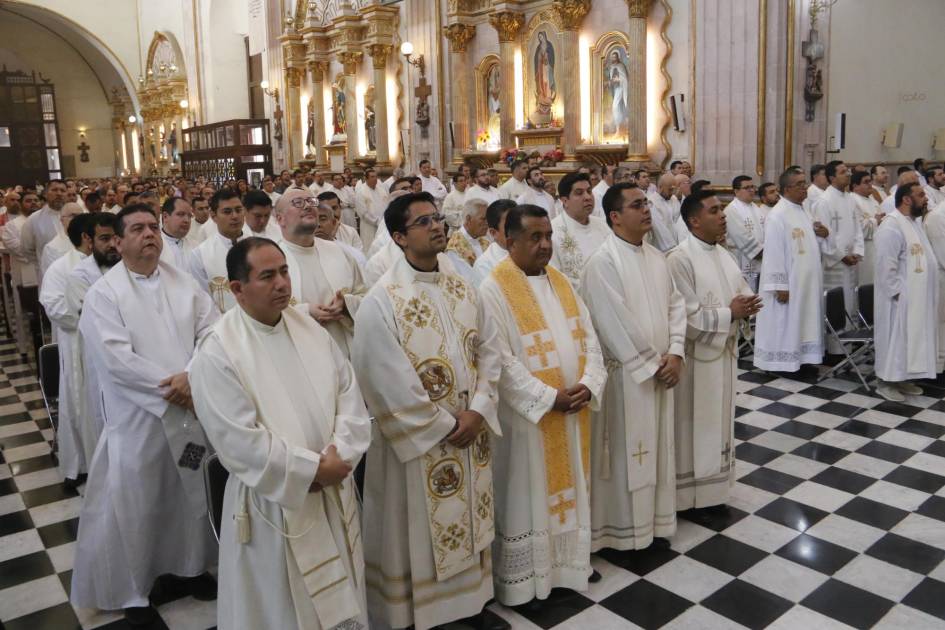 Sacerdotes, diáconos y seminaristas de la Diócesis de Culiacán acudieron al Templo de Nuestra Señora del Rosario “La Catedral”, para ser partícipes de la Misa Crismal, donde renovaron sus votos sacerdotales.