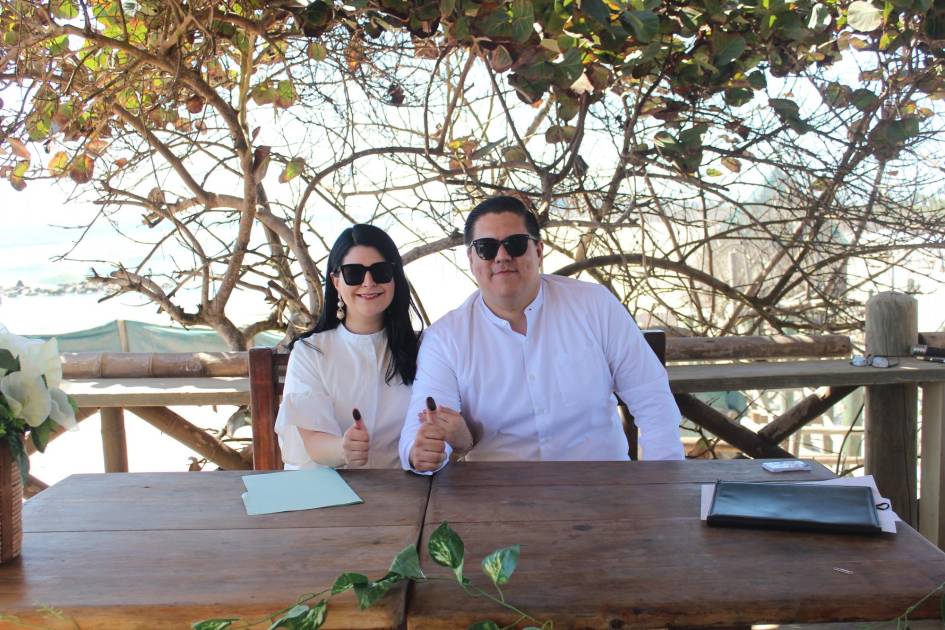 Concluida la ceremonia civil, la pareja de esposos y sus invitados disfrutaron de un rico menú con platillos a base de mariscos. Claudia y Hugo dieron a conocer también que la boda religiosa será el 28 de octubre en Mazatlán.