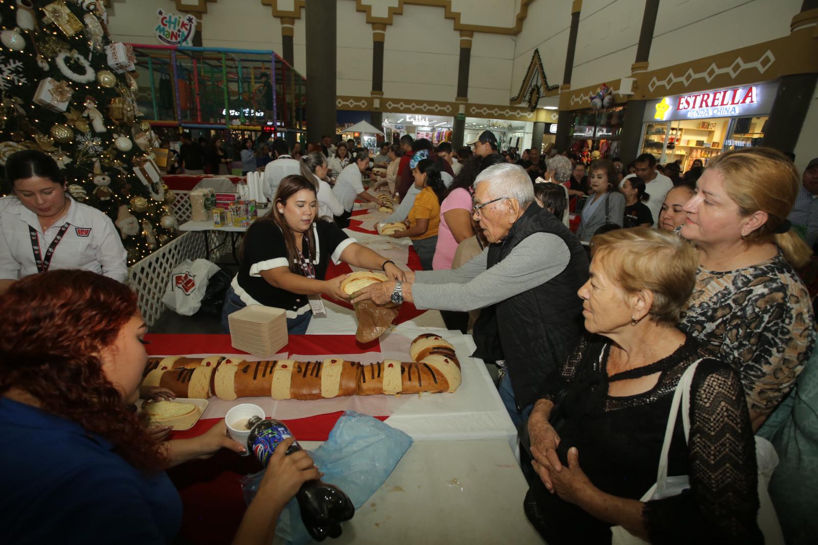 Personal de este centro comercial celebra la ilusión de este día compartiendo con sus clientes una rosca, que en esta ocasión midió 36 metros.