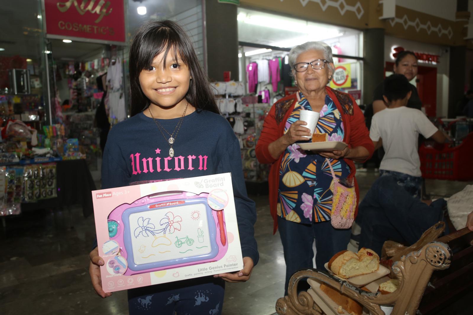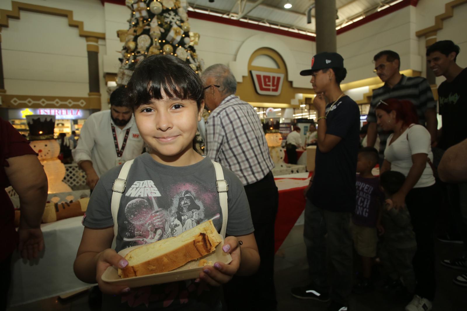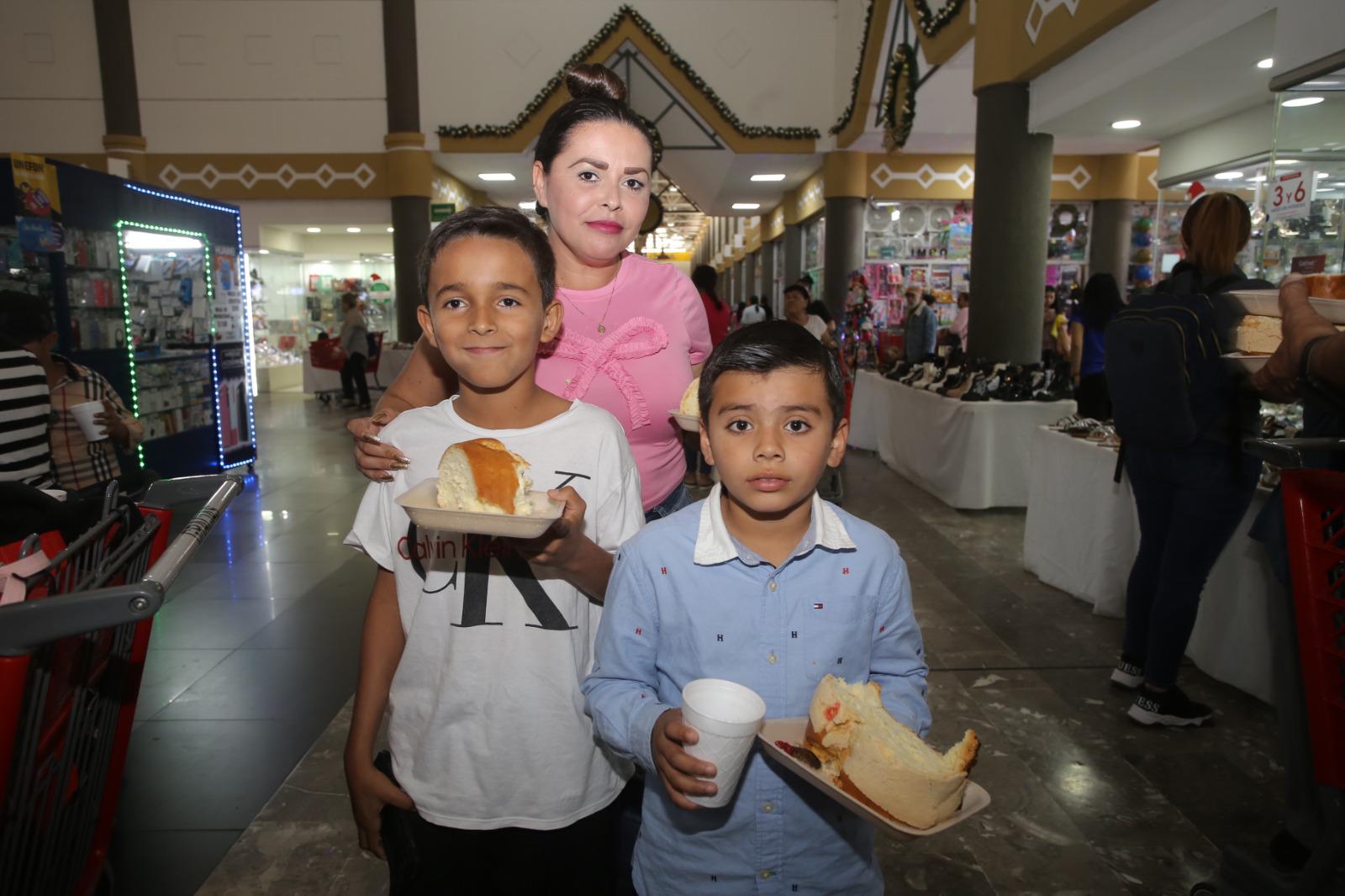 Los pequeños Brittany Gallardo, Marco Antonio Navarro y Alexa Valentina Madero Cancino, fueron tres clientes que se hicieron acreedores de juguetes, al tocarles los muñecos escondidos entre el pan, que representan al niño Dios.