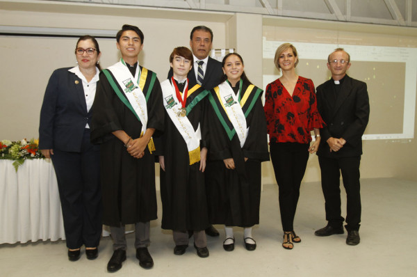 En el acto académico estuvieron presentes Gilberto Alapizco y Mercedes Zamora, director general y coordinadora de secundaria, respectivamente, así como también Angélica Martín de Madero, integrante del Patronato; además del Padre Rafael.