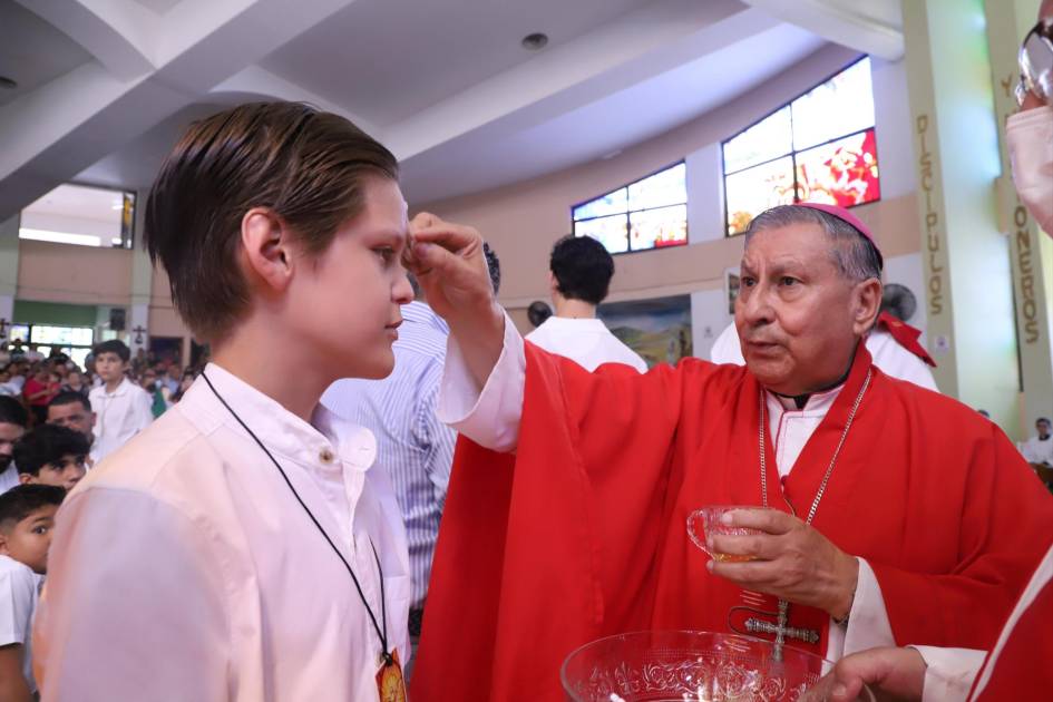 Durante el acto religioso, escucharon las palabras que el Obispo les compartió, invitándolos a tener una buena educación religiosa para poder defender la fe, mediante la oración y predicación, para posteriormente ungirlos con el santo crisma en su frente.