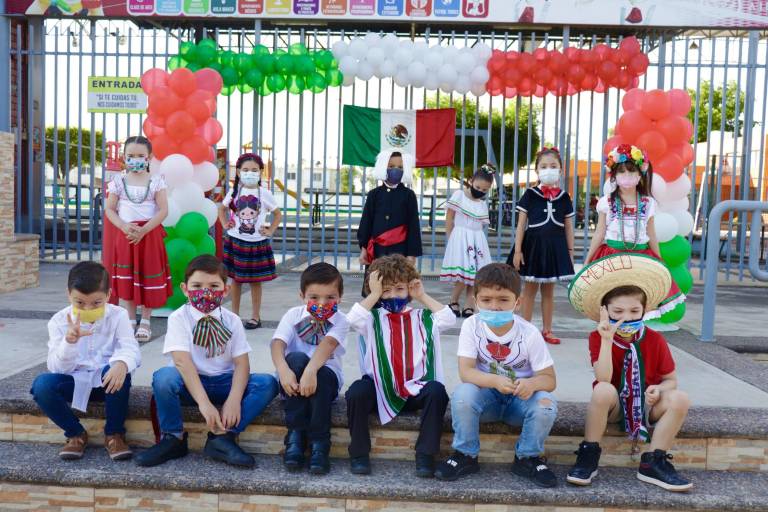 Los pequeños alumnos celebran las fiestas patrias vestidos de verde, blanco y rojo con motivo del 211 aniversario del movimiento histórico