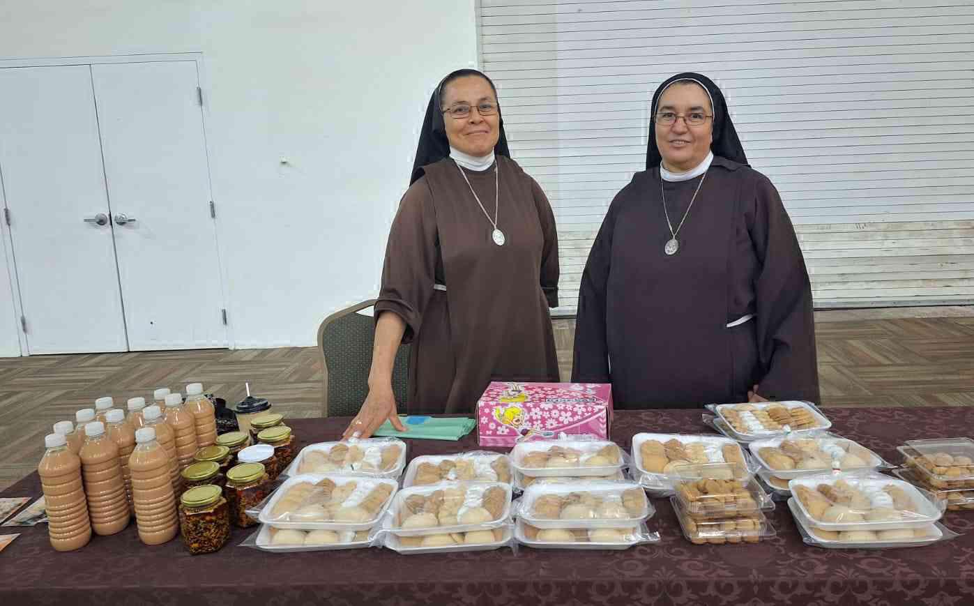 Las hermanas Clarisas Capuchinas estuvieron vendiendo su tradicional rompope de canela y nuez, así como sus galletas. ( ) -
