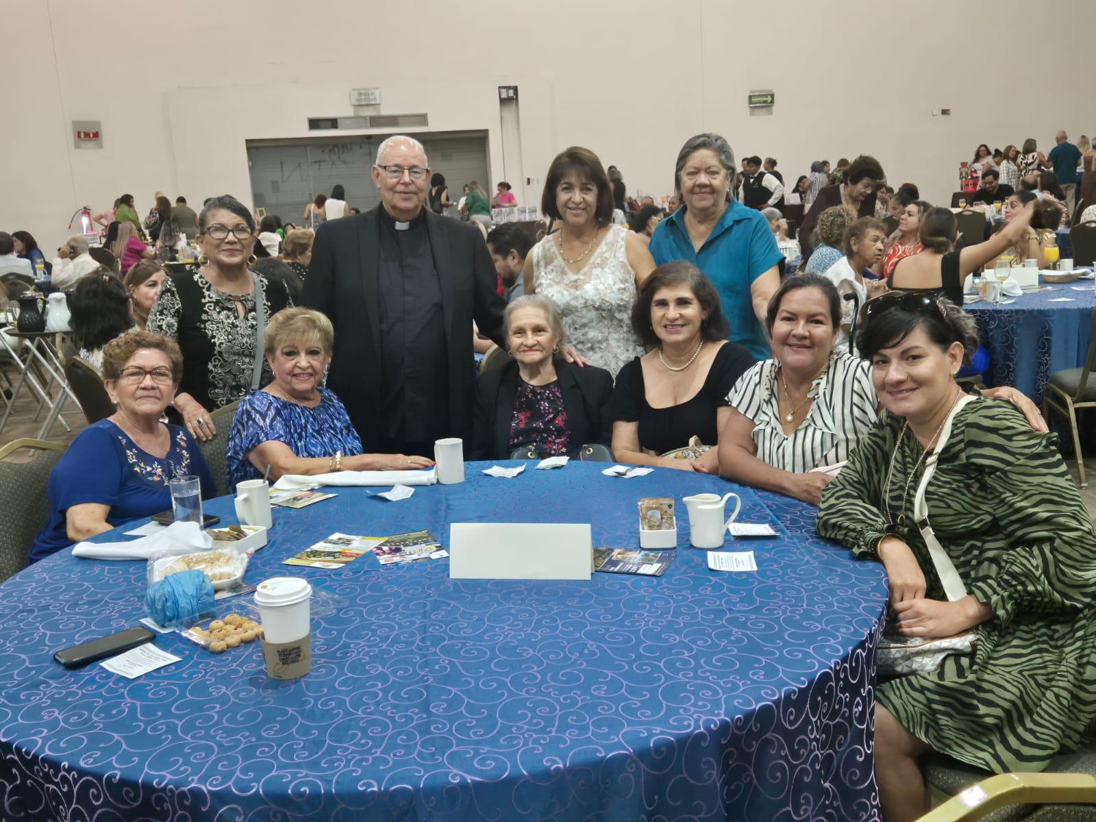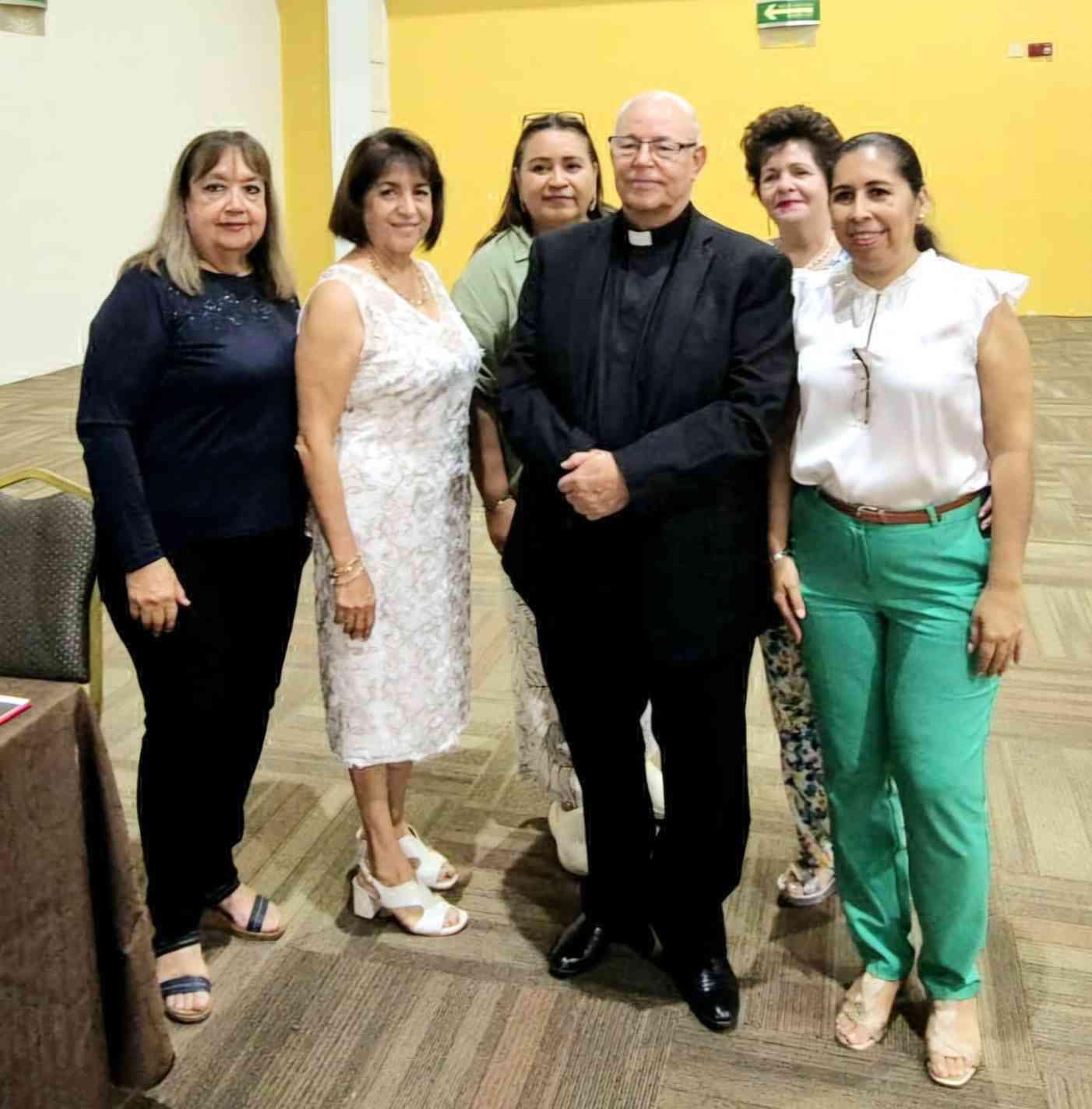 El Padre Horacio entre el grupo de apoyo, Lupita Zamudio, Rosy Guzmán, Elsa Uribe, Adelita García y Mariana Gamboa. ( ) -