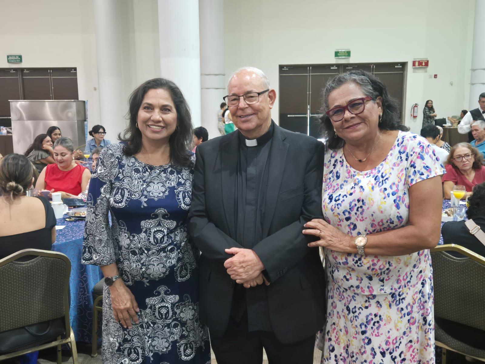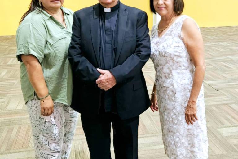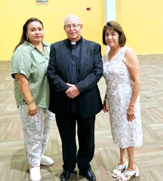 Minerva y Viky Maldonado junto al Padre Horacio. ( ) -