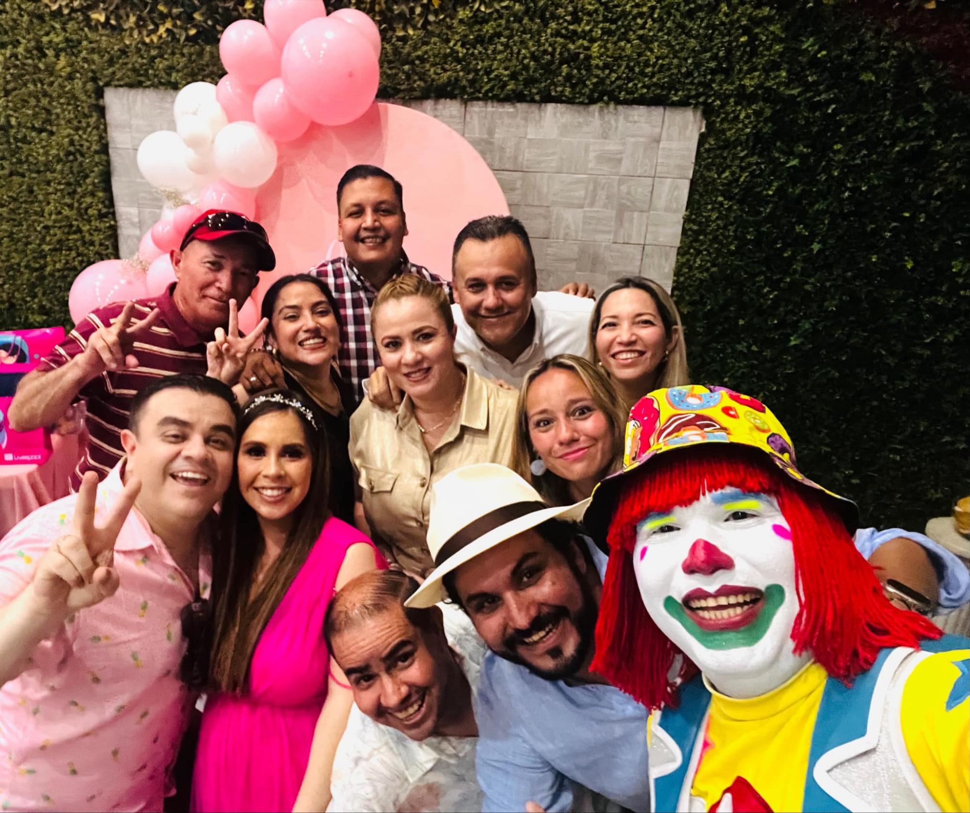 Patricia Lizárraga, María de La Paz Lizárraga Bañuelos, Gabriel López, El payaso Chocorrol, quien amenizó el evento, Cyntia, Rosa Lizárraga y Viridiana López Lizárraga. ( ) -