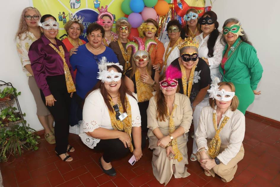 Las asistentes lucieron coloridas máscaras y detalles alusivos a la temporada, mientras la decoración del lugar destacó con elementos carnavaleros que llenaron el espacio de alegría y tradición.