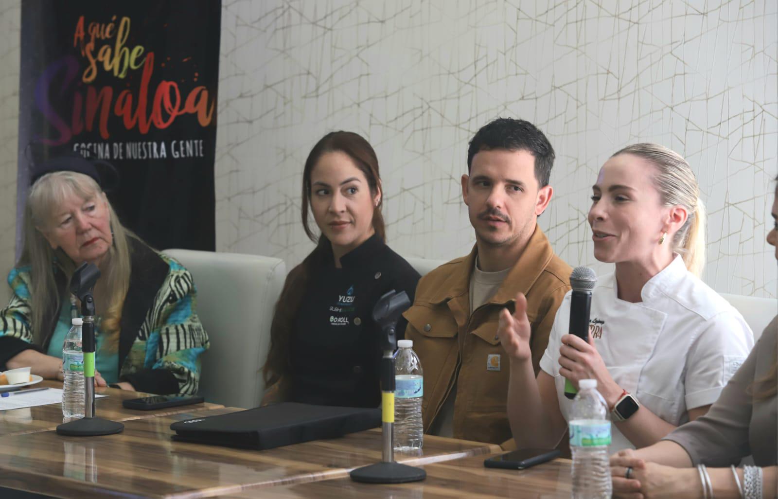 La chef Andrea Lizárraga explica a los presentes sobre el proyecto “A qué sabe Sinaloa”, docuserie producida por Grupo Noroeste. ( ) -
