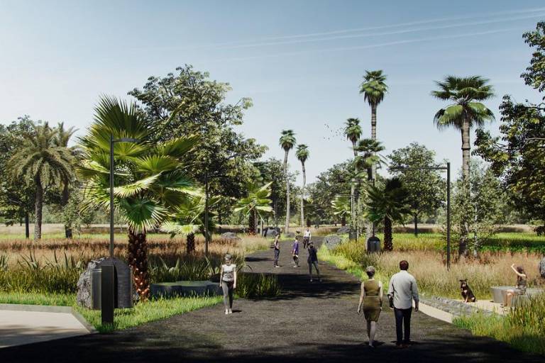 El sendero tendrá una longitud de 700 metros, es decir 1167 pasos, incluirá más vegetación en el parque, principalmente especies regionales y palmas, se colocará mobiliario urbano como botes de basura, bancas y mucha iluminación, esto para brindar mayor seguridad a los visitantes.