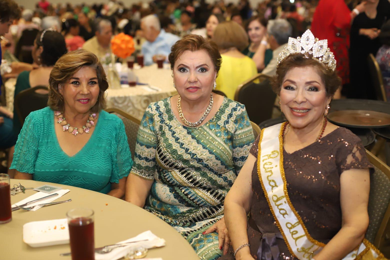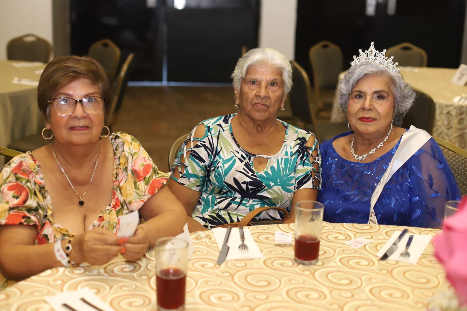 Nelva Martínez y Amalia Sánchez junto a Concepción Hernández, quien es la Reyna de los Abuelos 2023. ( ) -