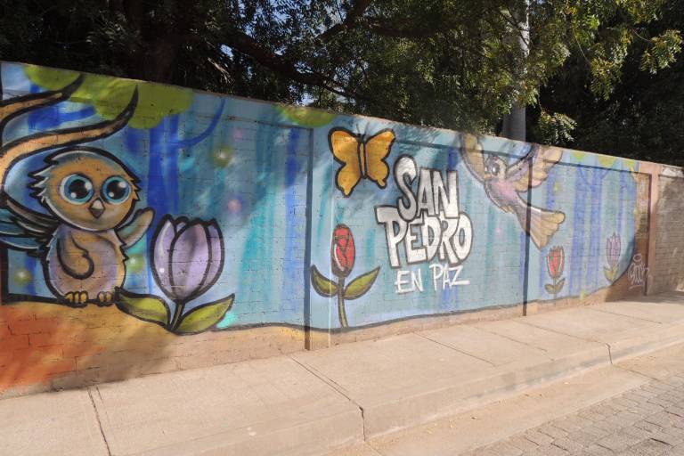 SAN PEDRO, Navolato._Un llamado a la paz a través del arte urbano, es la que realizaron alumnos de la Escuela Secundaria Técnica No. 22, de San Pedro, Navolato, quienes develaron un colorido mural titulado Amor propio y paz, en el que plasmaron su talento en el dibujo, apoyados por el artista urbano llamado Block.