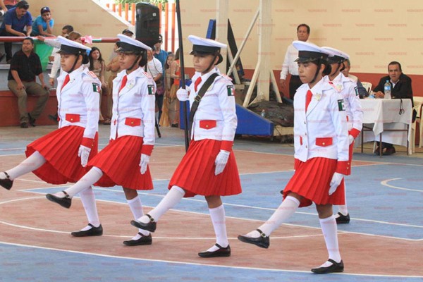 Pulcritud, disciplina y fuerza mostraron los participantes del Segundo Concurso Estatal de Escoltas de Bandera Apegado a los valores de identidad nacional, que se realizó en la cancha Germán Evers.