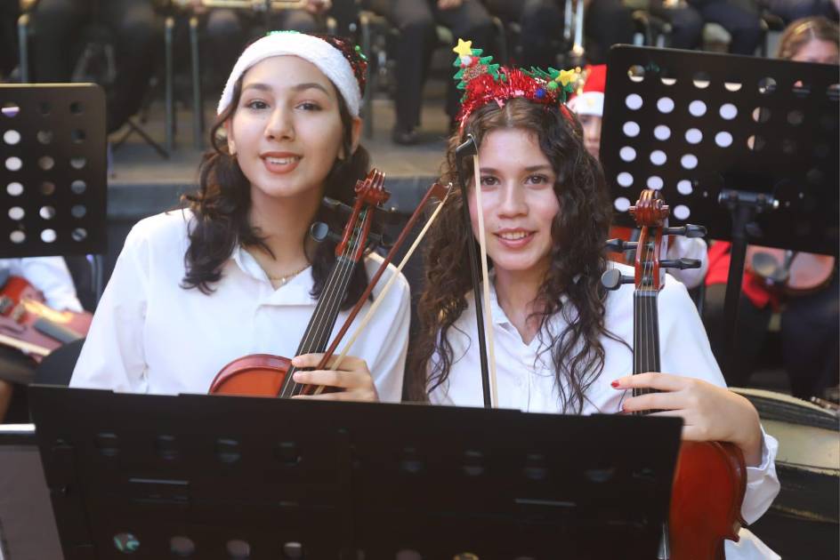 La Orquesta Sinfónica Infantil Paseo del Centenario y el Coro Infantil Voces del Mar ofrecieron una presentación navideña que reunió a familias enteras, quienes acompañaron con aplausos y grabaciones el talento de sus hijos.