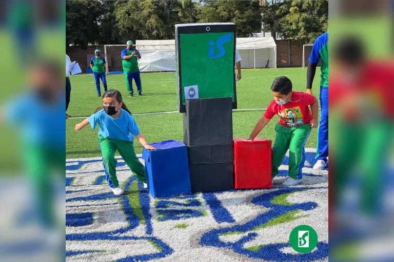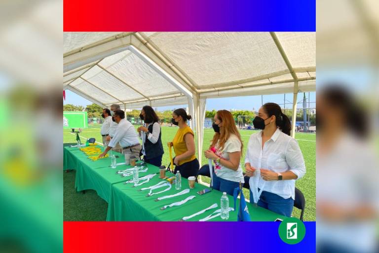 Durante el evento se mantuvo el uso corrector del cubrebocas durante, la sana distancia, uso de gel antibacterial y el orden al ingreso de los alumnos de Prematernal, Maternal, Kínder, Primaria, Secundaria y Preparatoria, a las canchas.