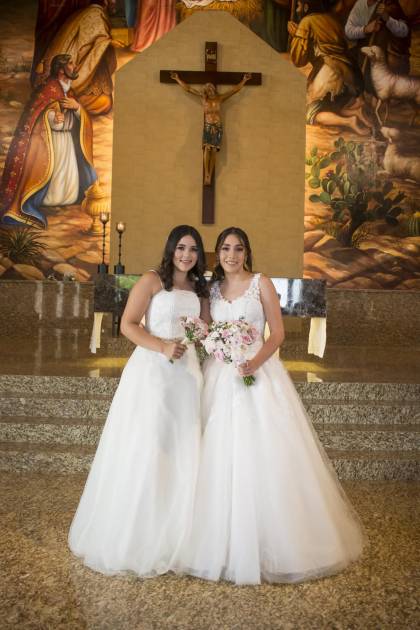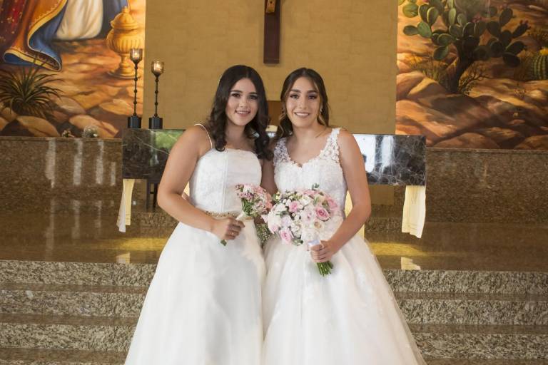 Fue en el Templo de Belén donde estuvieron acompañadas de sus papás, Jorge Arturo Castro Aldana, Gloria Sánchez de Castro, Ignacio López Burgos y Annette Escamilla de López, con quienes compartieron junto a ellas ese bello momento.