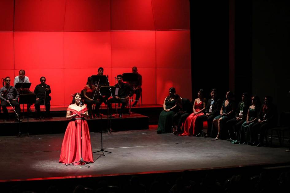 Bajo la dirección artística del tenor José Manuel Chu, director y vocal coach del Taller de Ópera, y con el maestro Samuel Murillo a cargo del Ensamble convertido en mariachi, el programa abrió con el vals Alejandra, de Enrique Mora Andrade. Le siguieron Cielo rojo, de Juan Záizar; Sufriendo a solas, de José Ángel Espinoza “Ferrusquilla”, y Un mundo raro, de José Alfredo Jiménez.
