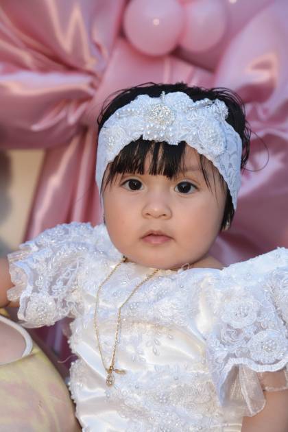 El retoño de Ruth Arely Pazos Mandujano y Gilberto Acosta Cárdenas, Elisa Montserrat, asistió a la casa de Dios, donde fue presentada a la comunidad católica, tras recibir el sacramento del bautismo.