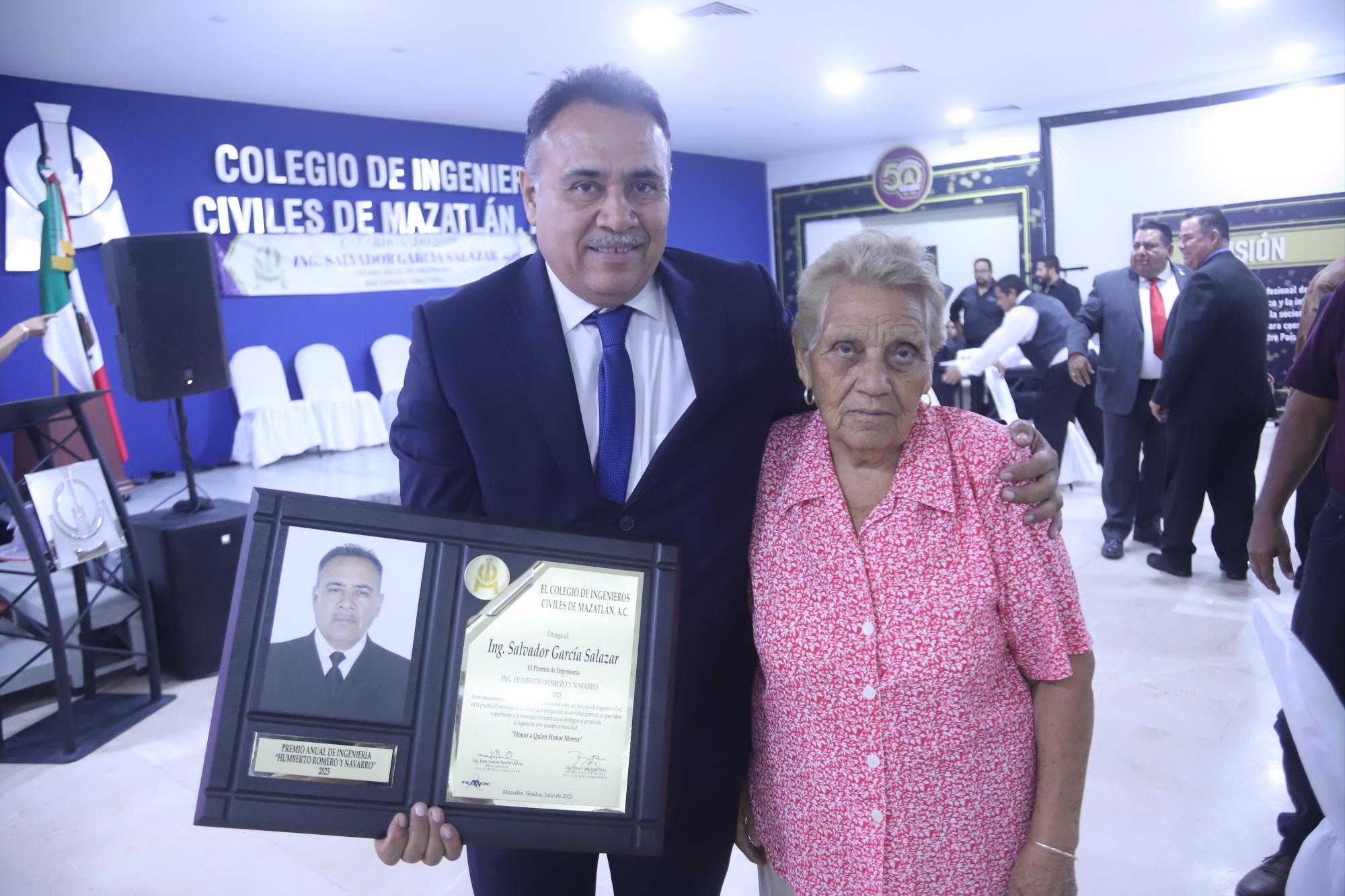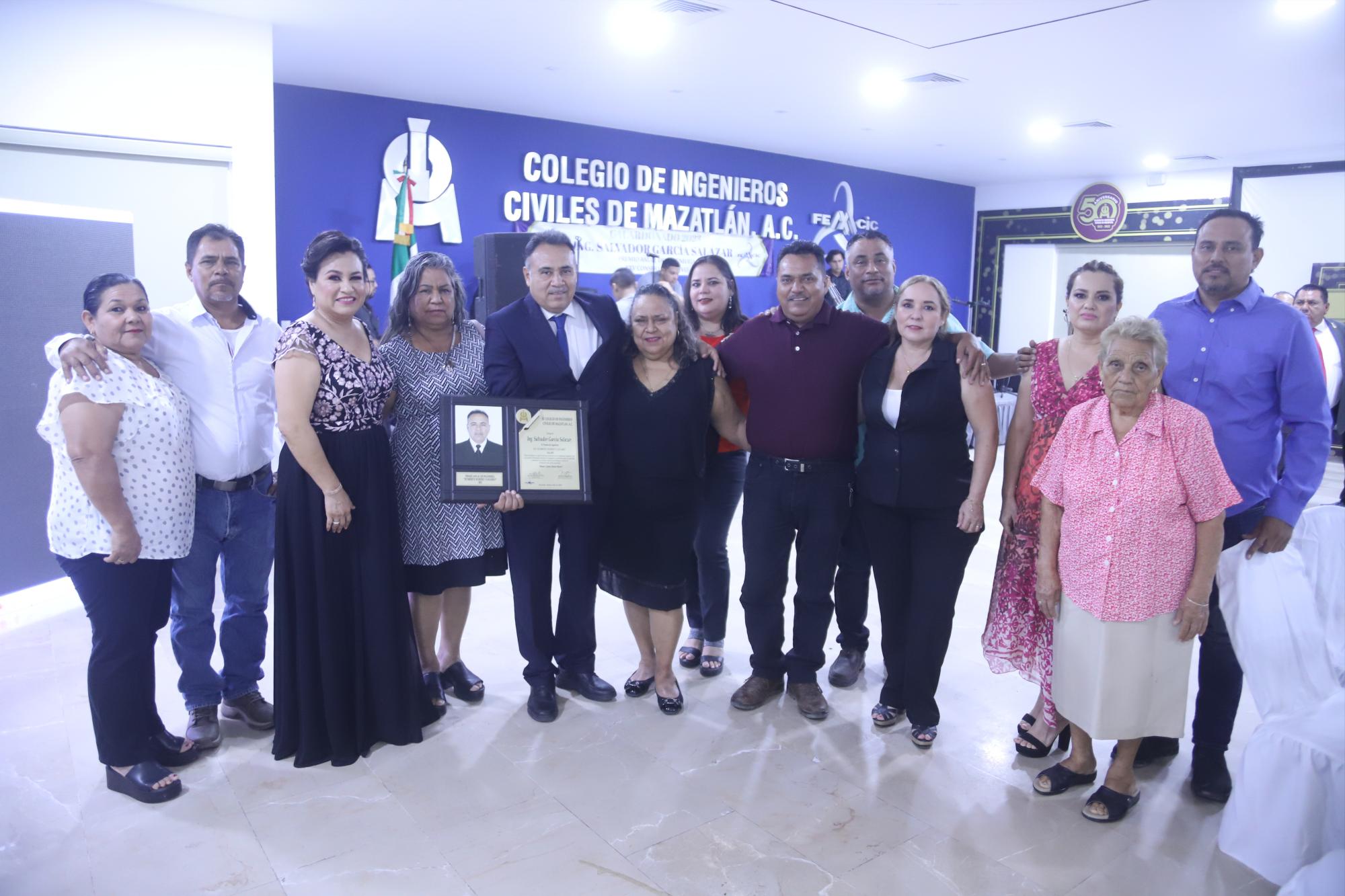 Por su trayectoria y méritos en su profesión, el ingeniero civil Salvador García Salazar recibió la máxima distinción anual que su gremio entrega en el puerto, el Premio Humberto Romero Navarro.