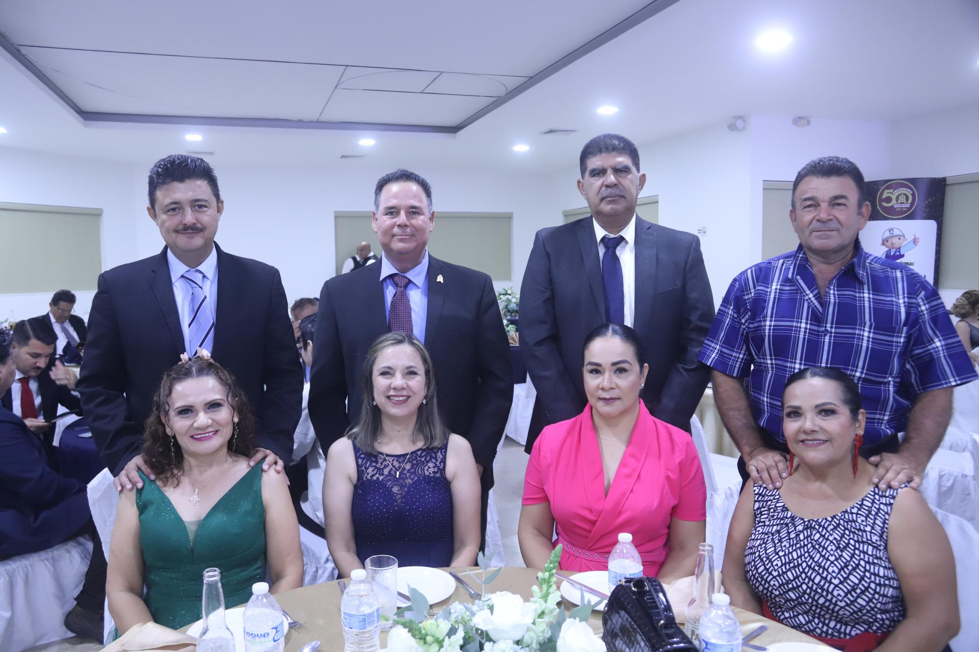Luis Zatarain, Omar Gastélum, Óscar Omar Álvarez y Jozquin Vizcarra. Sentadas, Ana María Lamarque, Malú de Gastélum, Carmen Yasaret Díaz, y Lorena Castañeda. ( ) -