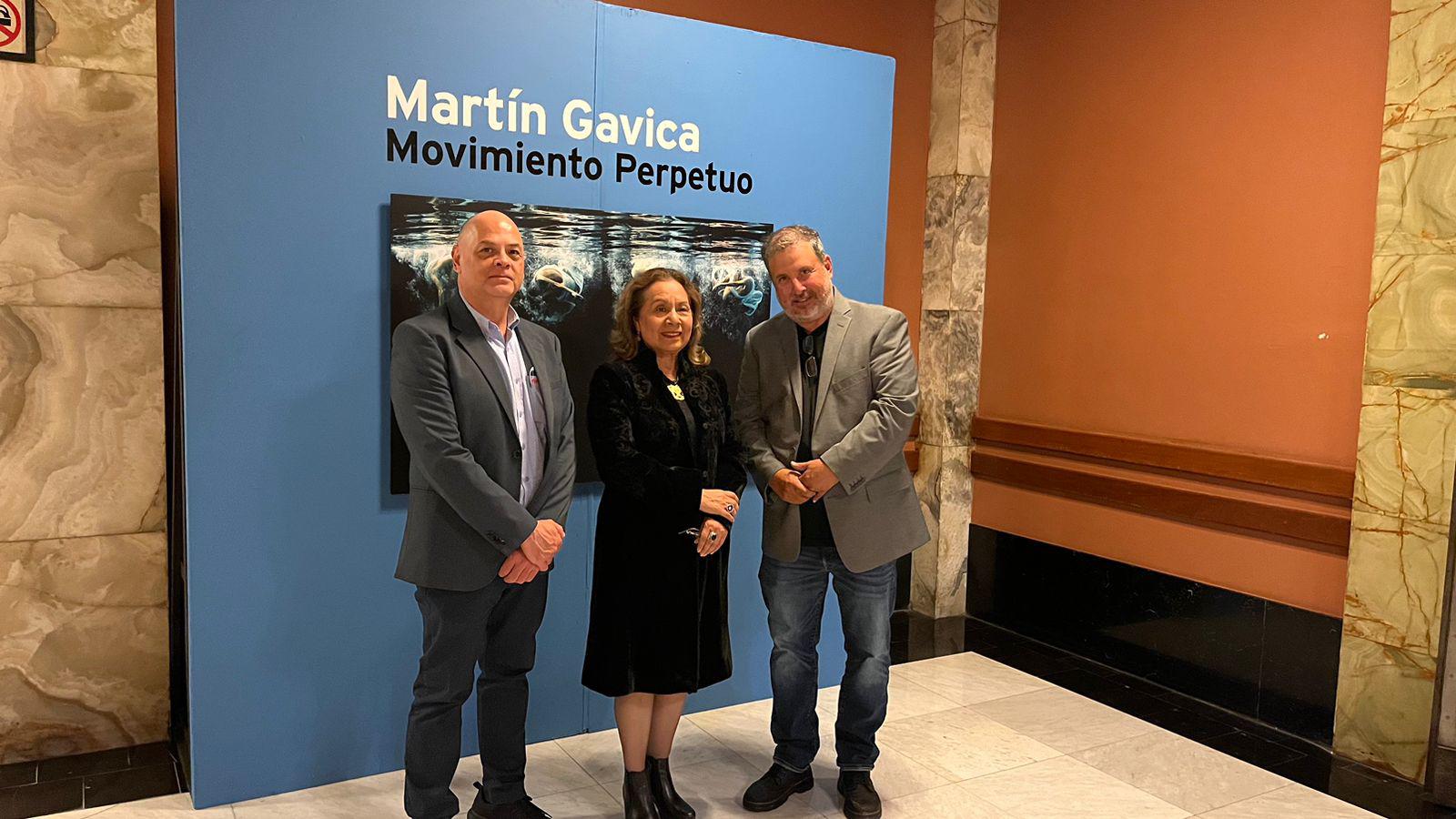 Lucina Jiménez y Héctor Romero Lecanda, directora y subdirector del INBAL, respectivamente, junto a Martín Gavica. ( )