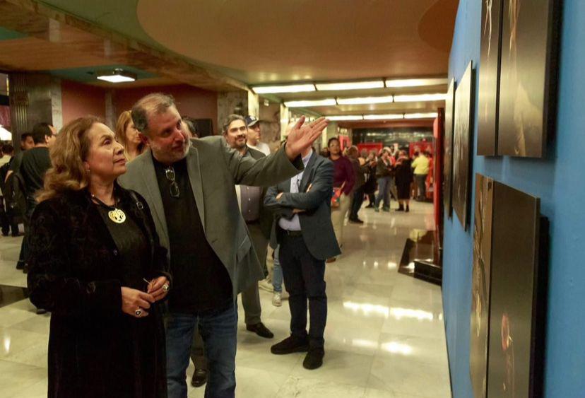 Martín muestra una de las fotografía a Lucina Jiménez, directora del INBAL. ( ) -