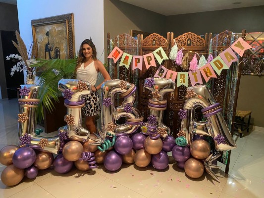 Globos de colores dorado, rosa y morado, un letrero de "Happy Birthday" y su nombre en color plata, así como el número gigante de su cumpleaños, fue de lo que disfrutó ese día tan especial la soberana de la máxima fiesta del puerto.