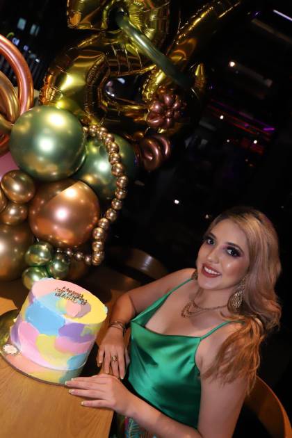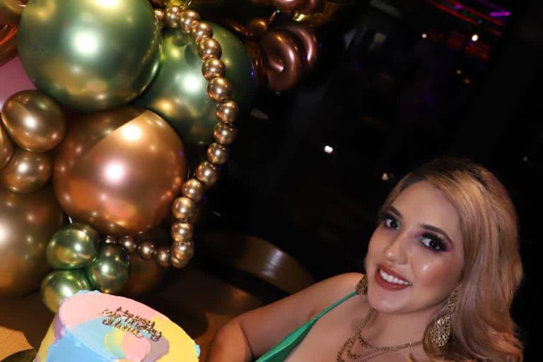 Un pastel de colores, globos metálicos y el número 24 gigante complementaron el festejo al que acudieron gran parte de la Corte Real del Carnaval 2022, entre ellas, Carolina Pérez e Ivanna Matamoros, Reina del Carnaval y Reina de los Juegos Florales, respectivamente.