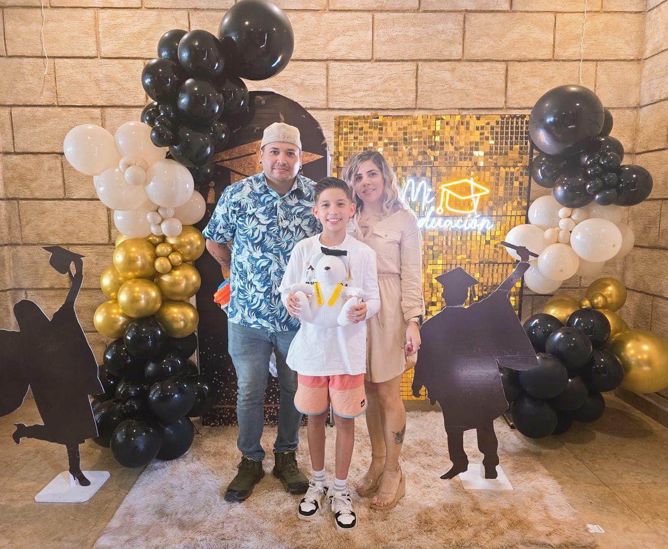 Iñaki entre sus padres, Iván Contreras y Chantal López. ( ) -