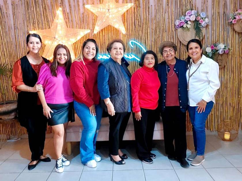 Adriana Castro, Nora Cecilia Hernández, Marcela Hernández, Elva Ninfa de Solano, Aurelia Hernández, Mila de Castro, y Eliana Solano comparten sus buenos deseos en el nuevo año