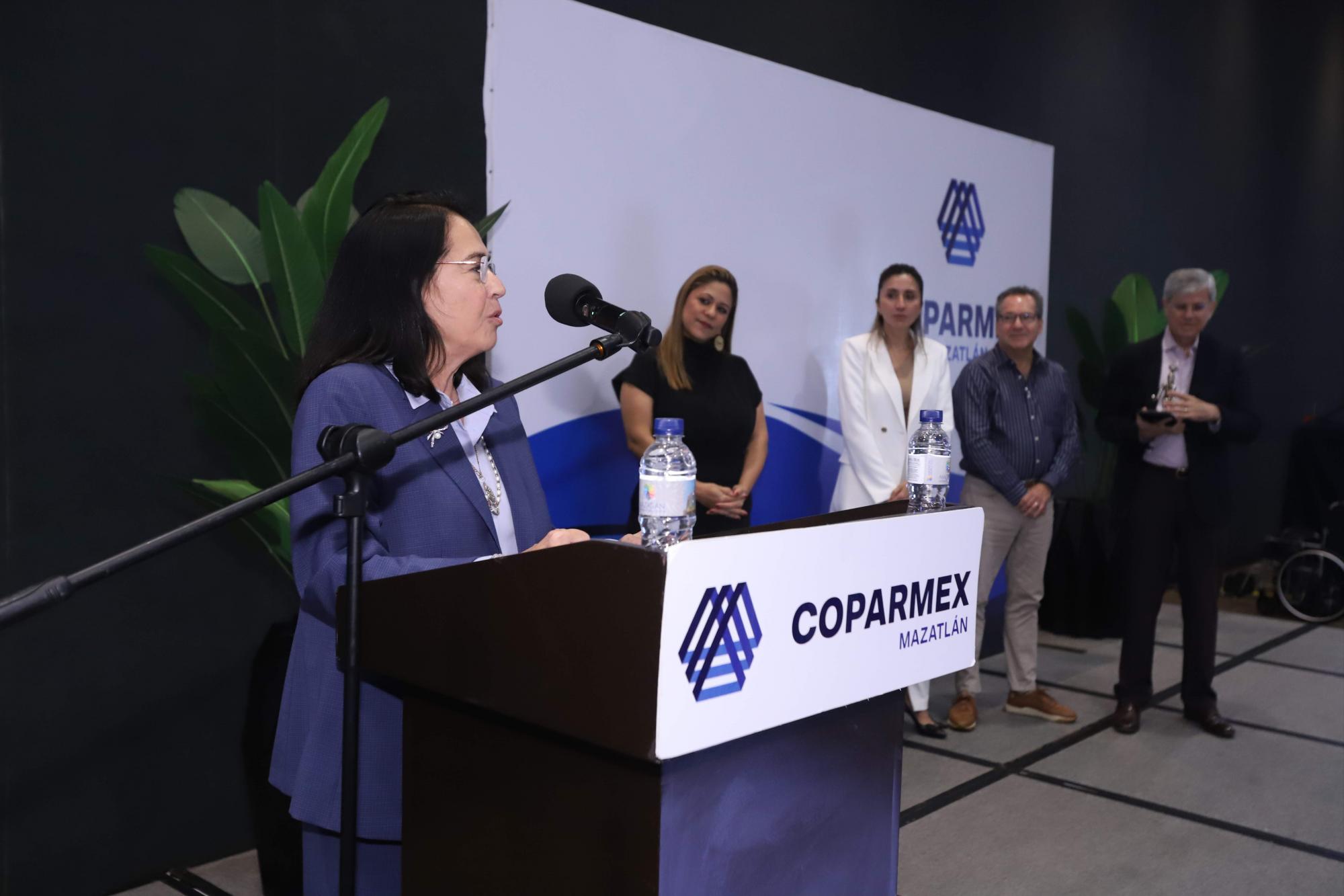 Yudith Verónica Estrada, presidente de Coparmex, fue la anfitriona del evento que tuvo lugar en el Centro de Convenciones, al que asistieron integrantes de la intercamaral, empresarios e invitados especiales.