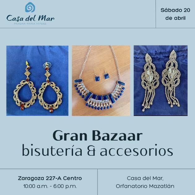 Este sábado 20 de abril habrá un Gran Bazar Bisutería & accesorios en pro de Casa del Mar, en Mazatlán. ( ) -