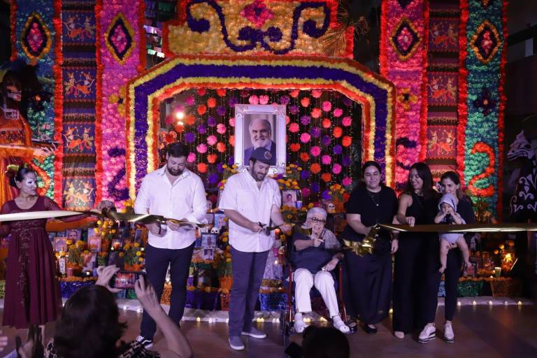 En el altar, que está lleno de flores de cempasúchil de distintos colores, así como una esbelta figura de una catrina, destaca la fotografía del empresario, quien es recordado con cariño y admiración por los que lo conocieron.