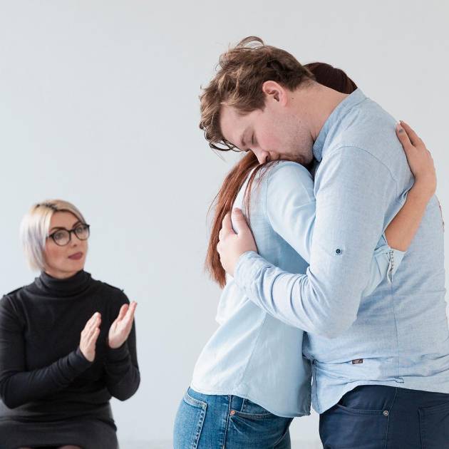 Dos personas pertenecientes al mismo grupo familiar que tengan un vínculo dañado y no sea posible restaurarlo verbalmente, tienen la oportunidad de una confrontación emocional mediante un abrazo, y ese es el sentido de la terapia de contención.