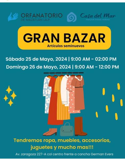 De nueva cuenta y como ya se ha hecho costumbre, Casa del Mar, hogar para niñas, está invitando a su Bazar de Verano que tendrá lugar este fin de semana en sus instalaciones, ubicadas en Avenida Zaragoza, frente a la Cancha Germán Evers.