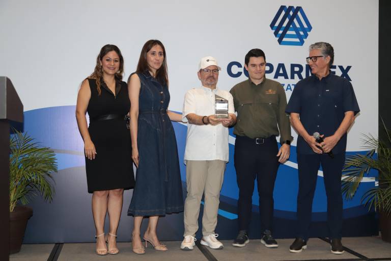 Al final, el ponente recibió un reconocimiento de manos de Verónica Estrada, líder de Coparmex Mazatlán, quien estuvo acompañado por Dunia Ocegueda, Javier Lizárraga y Guillermo Zerecero.