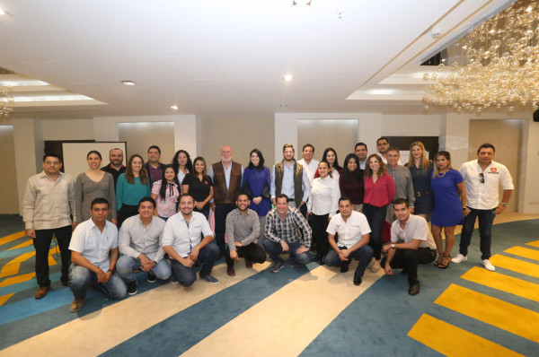 MAZATLÁN.- En un desayuno, los agremiados al Consejo de Empresarios Jóvenes, que preside Isabel Toledo, tuvieron la oportunidad de escuchar las experiencias del empresario inmobiliario y de agronegocios, Manuel Clouthier Carrillo.