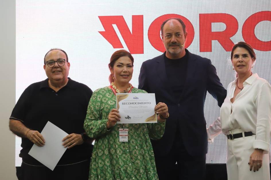 Liliana Ruíz, coordinadora de FODEN y Griselda Arámburo, directora de Oceánica, con sus reconocimientos. ( ) -