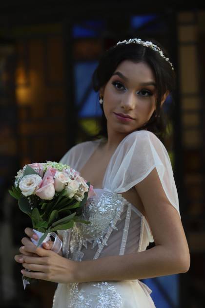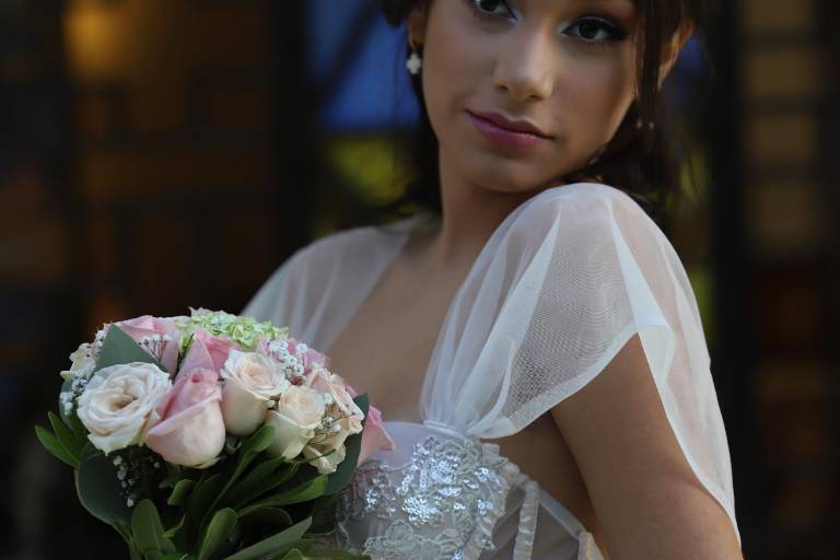 Feliz y radiante, Kyra Noriega García llegó al Templo San Judas Tadeo para escuchar atenta la emotiva ceremonia de acción de gracias para festejar sus 15 años.
