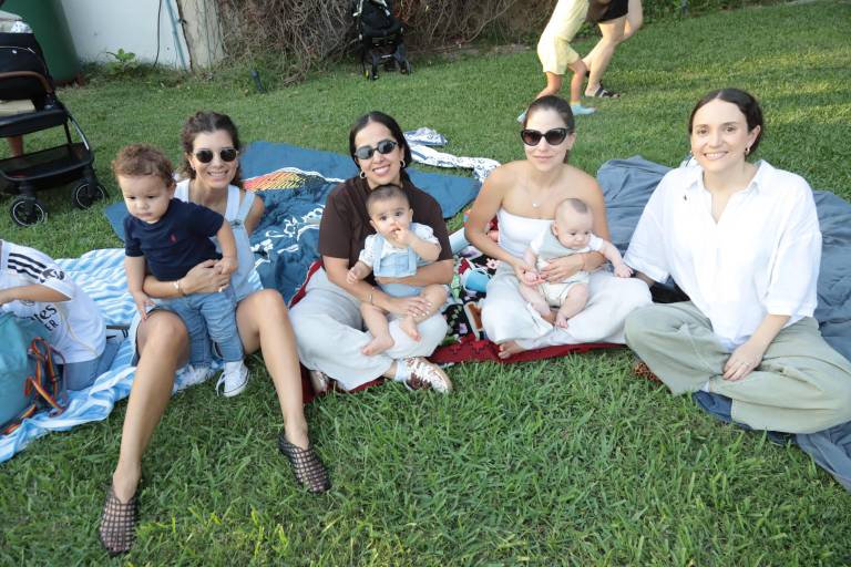 Lorena Zataráin y Gloria López Gavito con los pequeños Cordelia y Jorge Olalde Lizárraga. ( ) -