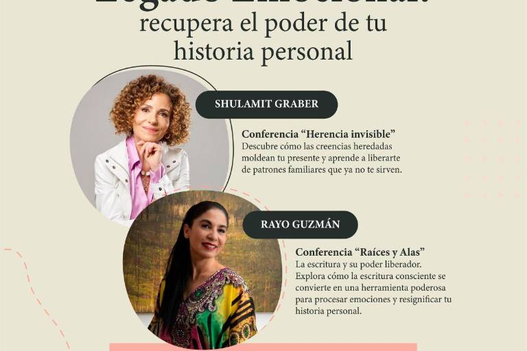 El encuentro reunirá a dos destacadas conferencistas: Shulamit Graber y Rayo Guzmán, quienes ofrecerán dos ponencias y un conversatorio enfocados en la resignificación de la historia personal y la liberación de patrones emocionales heredados.