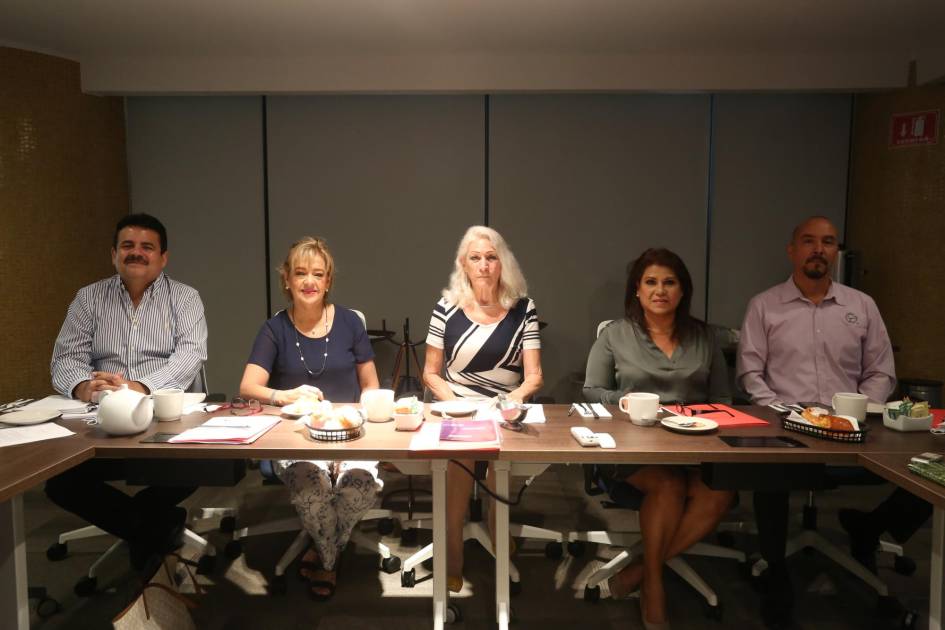 Olga María Enciso, directora del Premio Binacional Valladolid a las Letras, acompañada por Juan José Rodríguez, coordinador del jurado; Estela Margarita Arroyo, notaria pública número 136; Laura Quevedo, directora de Multiversidad Latinoamericana Campus Mazatlán La Marina; y Raúl Aguilar, coordinador de marketing de Sistema Valladolid, dieron a conocer vía redes sociales, oficiales de la institución, a los ganadores.